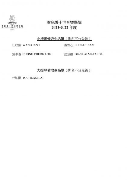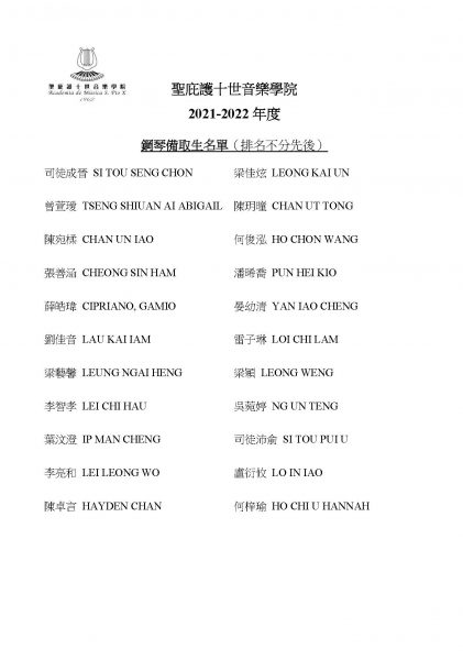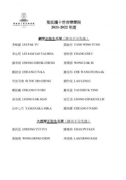 © 2026 All rights reserved. 聖庇護十世音樂學院版權所有。