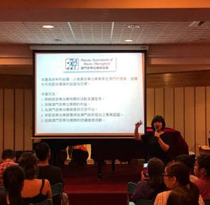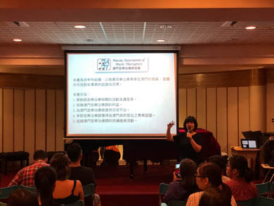 講員鄭曦蕾介紹本澳音樂治療的情況