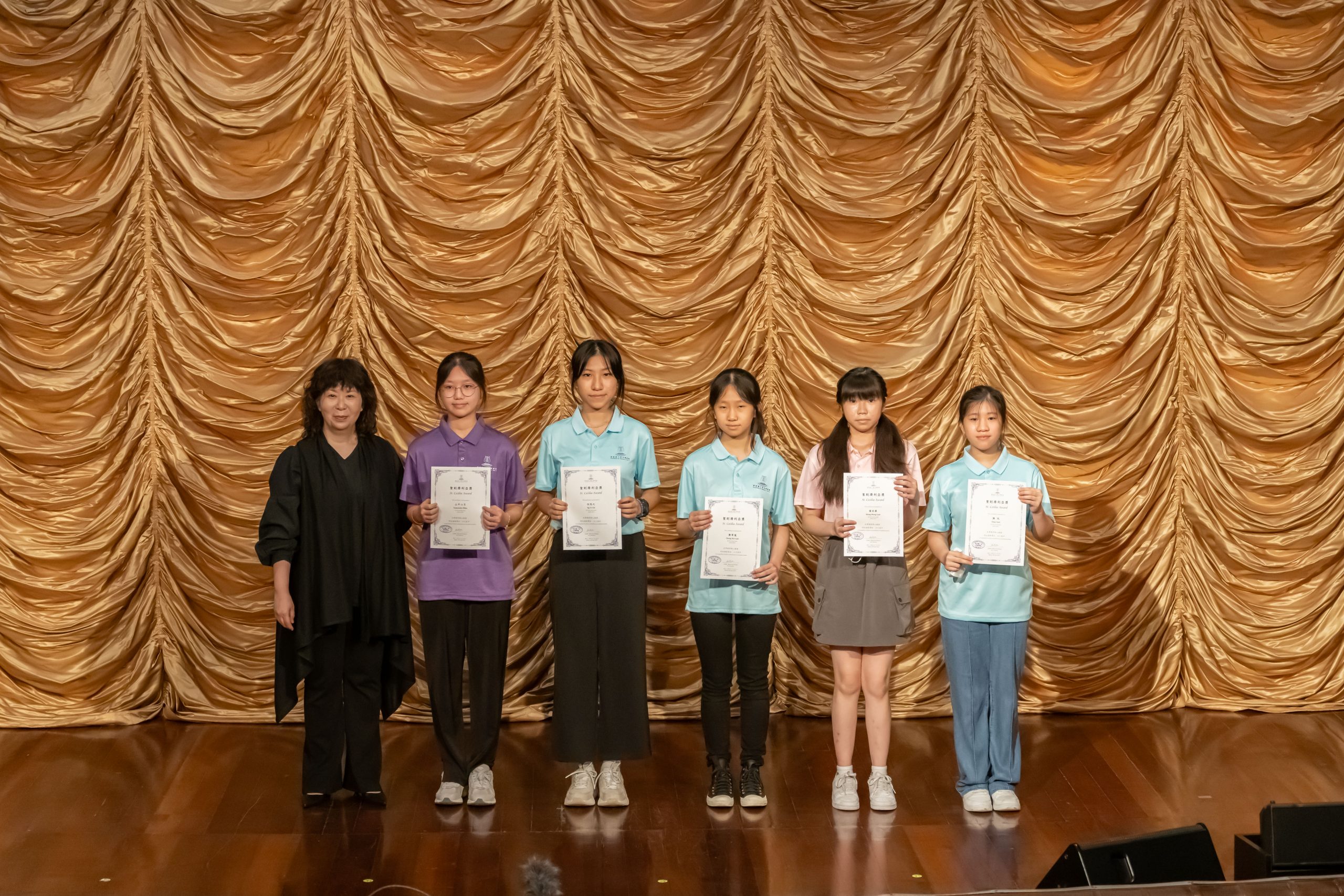 音樂會當日首先舉行簡單而隆重的頒獎儀式,鼓勵過去一年努力學習及成績優異的學生,獎項包括「進步獎」、「優異奬」、「聖則濟利亞奬」、「音樂理論奬」、「茱迪.霍斯特獎」、「娜麗塔.特魯獎」、「聖庇護十世音樂學院校友紀念奬」、「楊秀君老師紀念奬」、「莫慶恩神父紀念獎」及「演奏獎」等。獲獎學生為成績優異、品行良好,於校內評核試表現傑出。