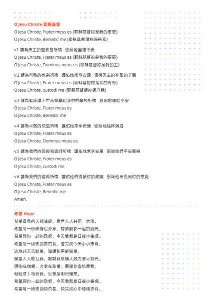 出席嘉賓有聖庇護十世音樂學院校監劉炎新神父及院長沈穎瑤、澳門敎區社會傳播中心主任廖國忠、聖庇護十世音樂學院校友梁劍英及梁貞潔、白世門、曾志超伉儷和劉炎榮伉儷。