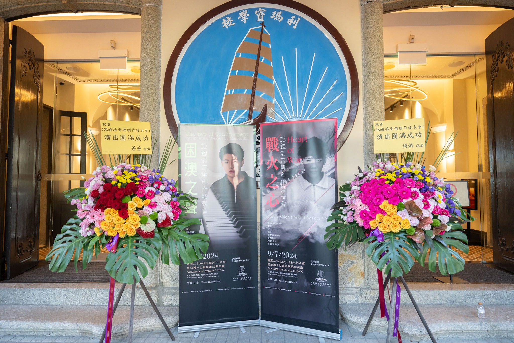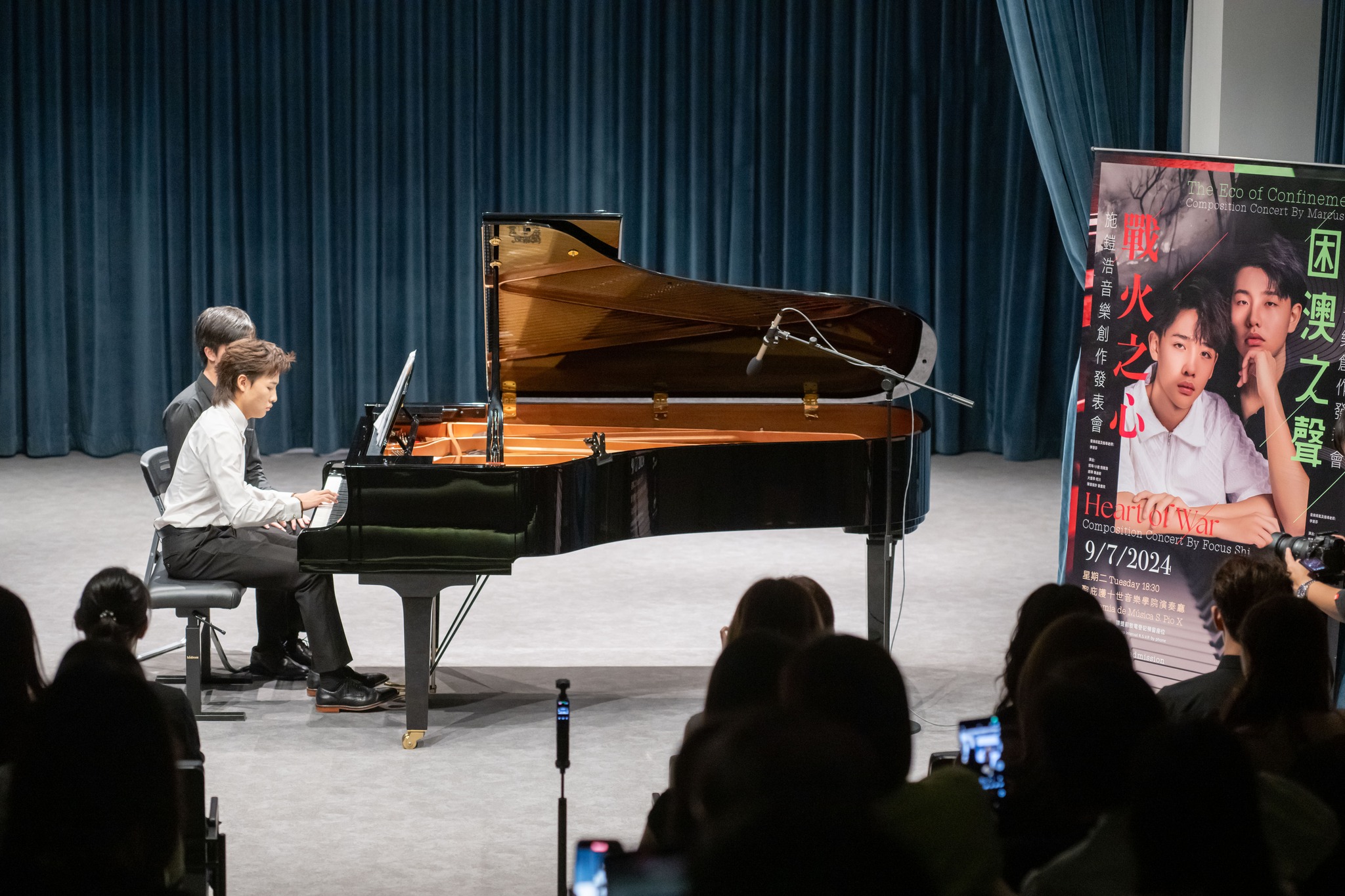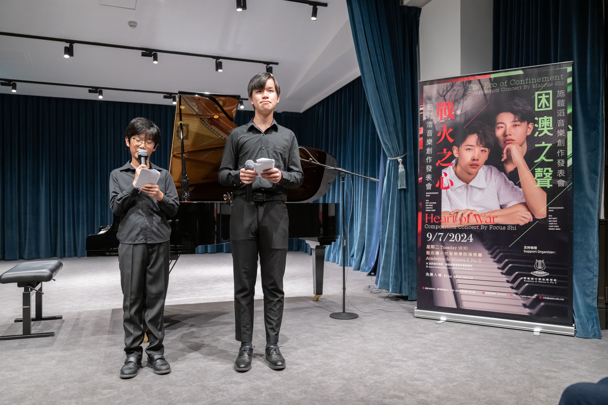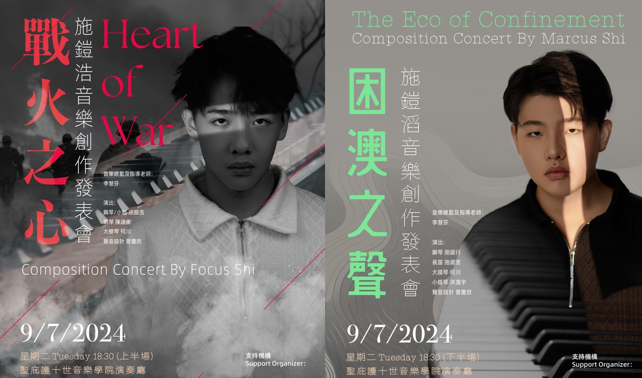 聖庇護十世音樂學院作曲學生施鎧浩與施鎧滔於7月9日(上星期二)下午六時半在該院演奏廳首演《戰火之心》及《困澳之聲》兩套原創音樂作品。音樂會出席者眾,現場反應熱烈,悠揚樂韻引起觀眾共鳴。