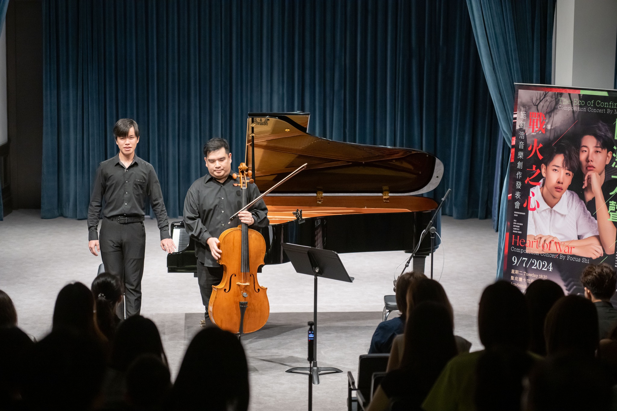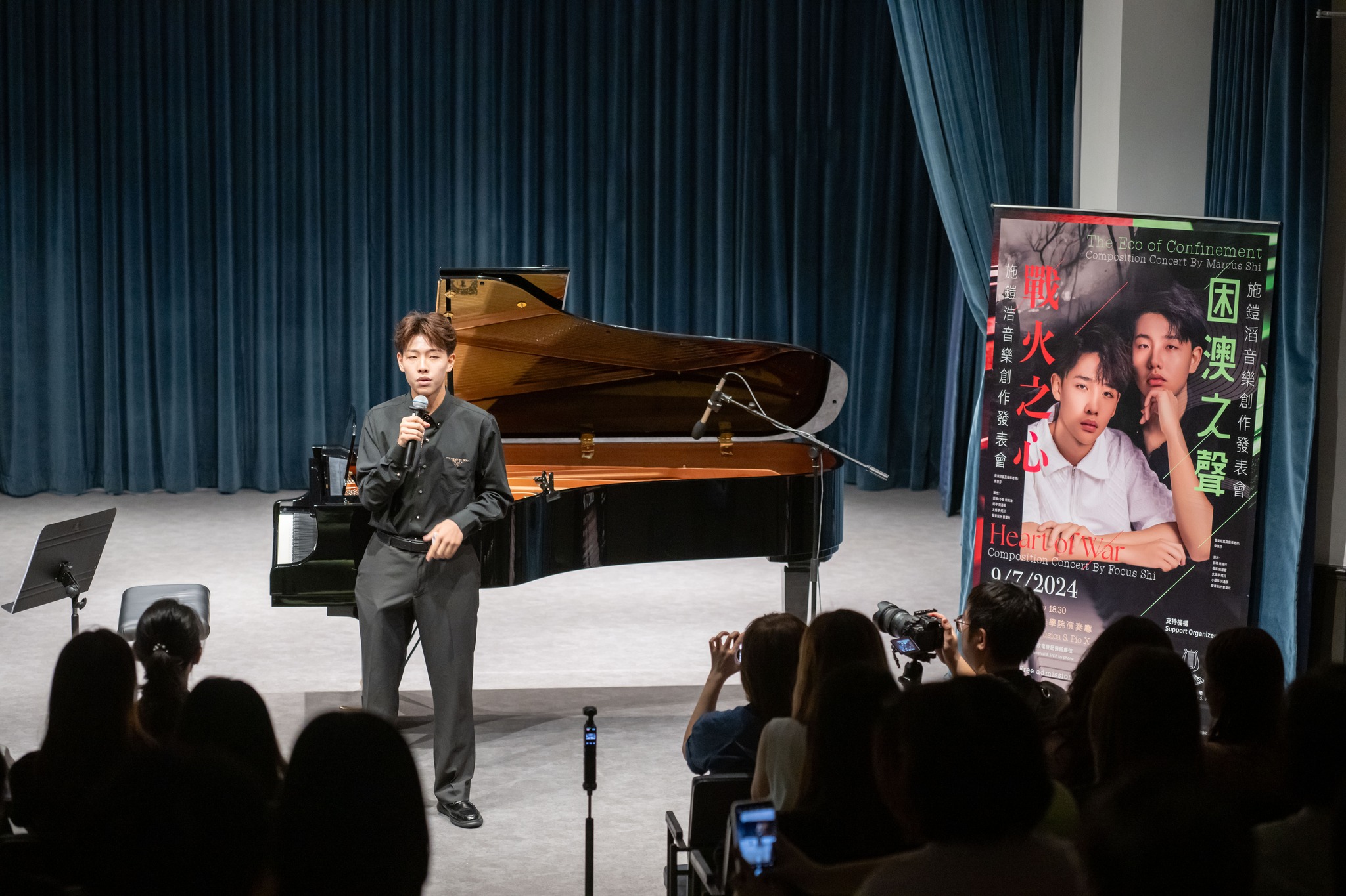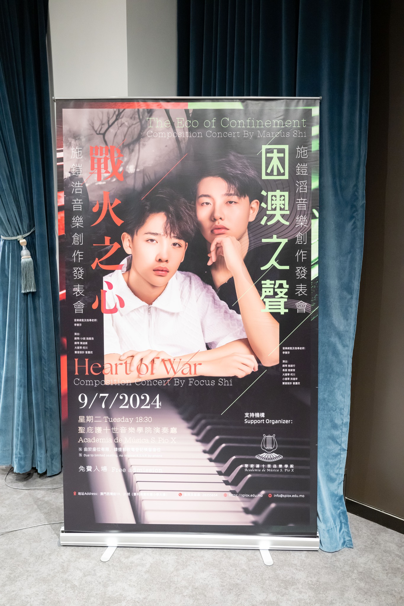 聖庇護十世音樂學院作曲學生施鎧浩與施鎧滔於7月9日(上星期二)下午六時半在該院演奏廳首演《戰火之心》及《困澳之聲》兩套原創音樂作品。音樂會出席者眾,現場反應熱烈,悠揚樂韻引起觀眾共鳴。