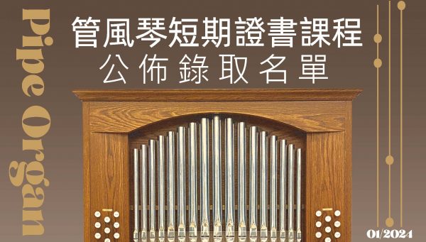 公佈管風琴短期證書課程錄取名單