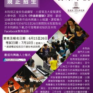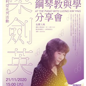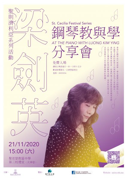 本院將於11月21日(星期六)假聖若瑟教區中學第三校(天神巷)舉辦聖則濟利亞系列活動之《梁劍英鋼琴教與學》分享會。梁氏將以她多年豐富音樂教學經驗,與音樂老師、家長和同學分享其心得,同時即場解答大家有關音樂教與學的問題,免