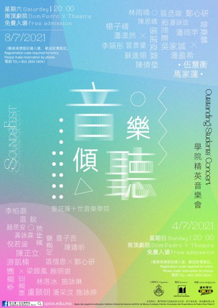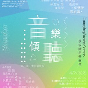 由天主教澳門教區舉辦的《音樂.傾聽》系列音樂會,將一連三場於崗頂劇院舉行。第一場音樂會由本院校友兼鋼琴家馬家蓮彈奏,她剛從紐約曼哈頓音樂學院以優異成績畢業。其餘兩場音樂會,由本院的學生表演,其中第二場有本院校友伍慧衡獻唱