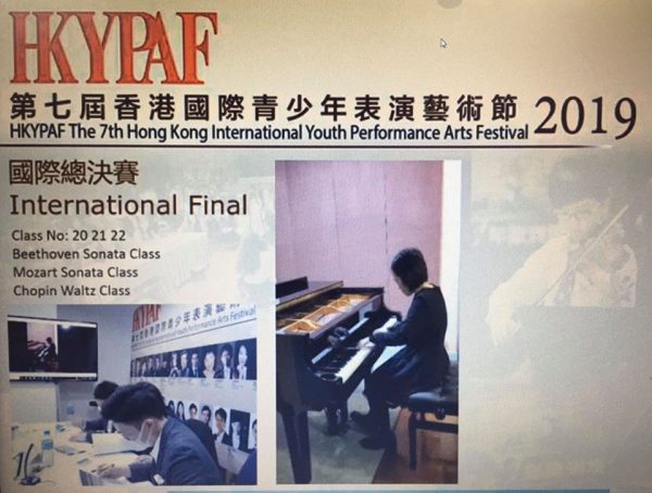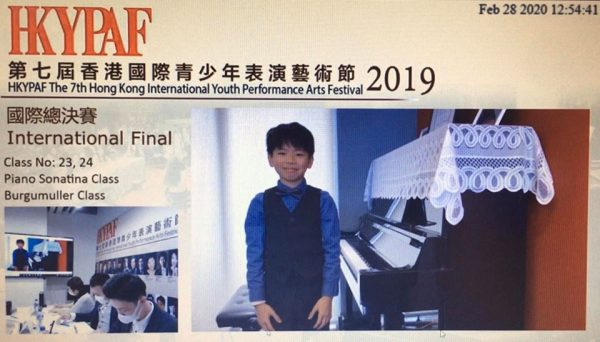 李柏灝 獲 "第七屆香港國際青少年表演藝術節2019" 國際總決賽 "布格穆勒組第二名"