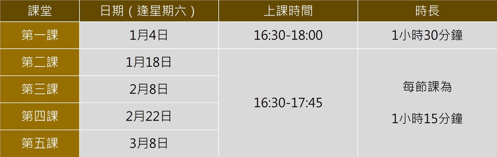 每課堂教授獨立課題,內容包括: