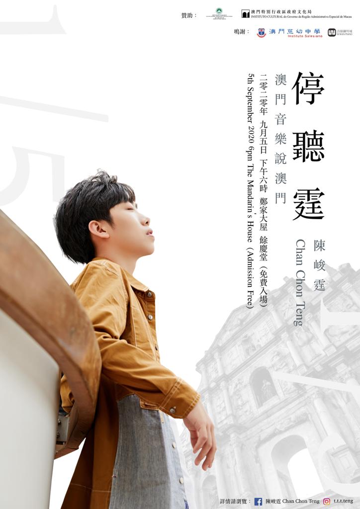 本院校友陳峻霆於9月5日假鄭家大屋舉行《停聽霆——澳門音樂說澳門》鋼琴獨奏會。陳氏為澳門文化傳播大使,希望通過音樂積極推廣澳門這個中西文化相融合的城市。音樂會設置於鄭家大屋通奉第室內空間及其前園。